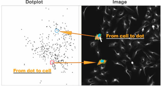 Взаимосвязь точки скатерограммы и определённой клетки на изображении позволяет пользователю найти точку, соответствующую конкретной клетке, и наоборот.
